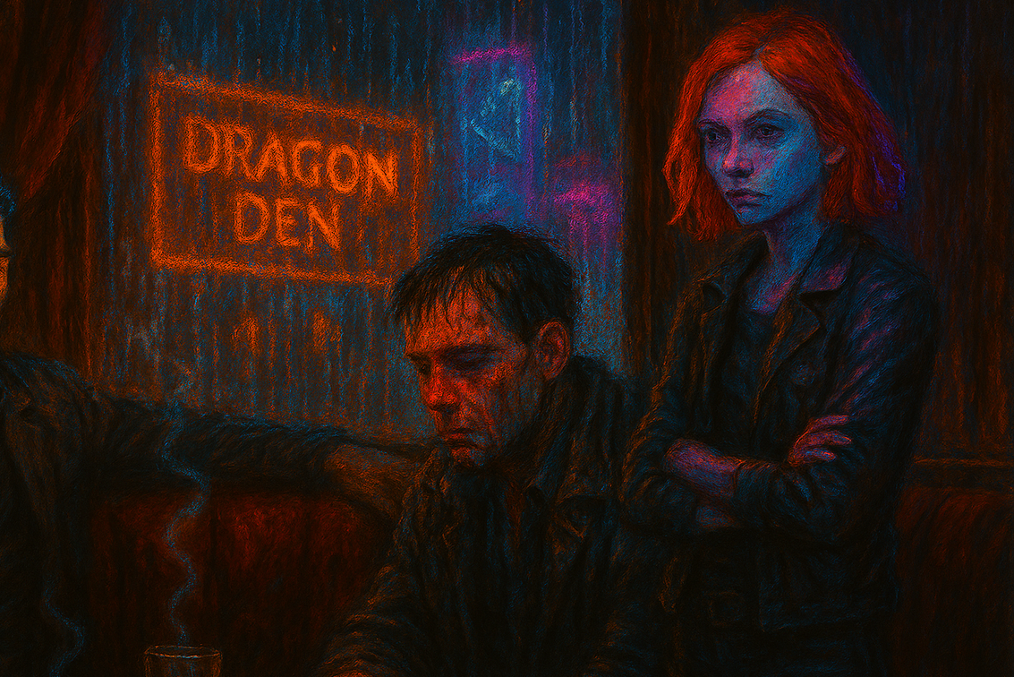 “You didn’t say goodbye,” Karasu said, his voice a cavernous murmur that cut through the music. Rei’s gaze slid from the door to him. There was no hesitation, no flicker of emotion. “There was nothing left to say,” she pushed a stray lock of hair back behind her left ear. “Because he sold you,” Karasu stated it flatly, a test. “He sold a burden and solved a problem,” Rei corrected, her voice as cool and steady as his.