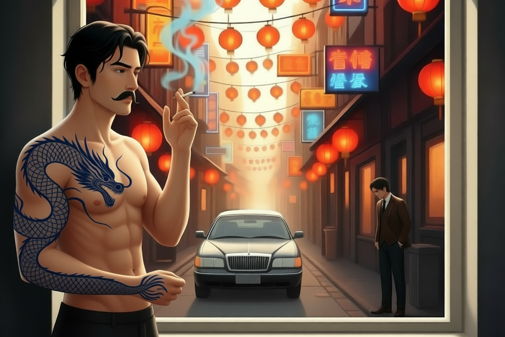 A fury tightened in Karasu’s chest. The audacity, the fucking statement of it. Rei stirred, sensing the shift in the air. “Karasu?”, her voice was sleep-soft. “Get up,” he said, his tone clipped, “Your ride is here.” She scrambled out of bed, joining him at the window. Her breath fastened. “It’s 6 a.m. On Fridays Cillian arrive around 9:30 – and at my apartment…”, the dread in her voice was sharp. Karasu turned to light a cigarette. “Takumi is reminding us who holds the leash this morning,” he bit out, taking a long drag. The blue tip flared, mirroring the anger in his eyes, “He knows you’re in my bed.”