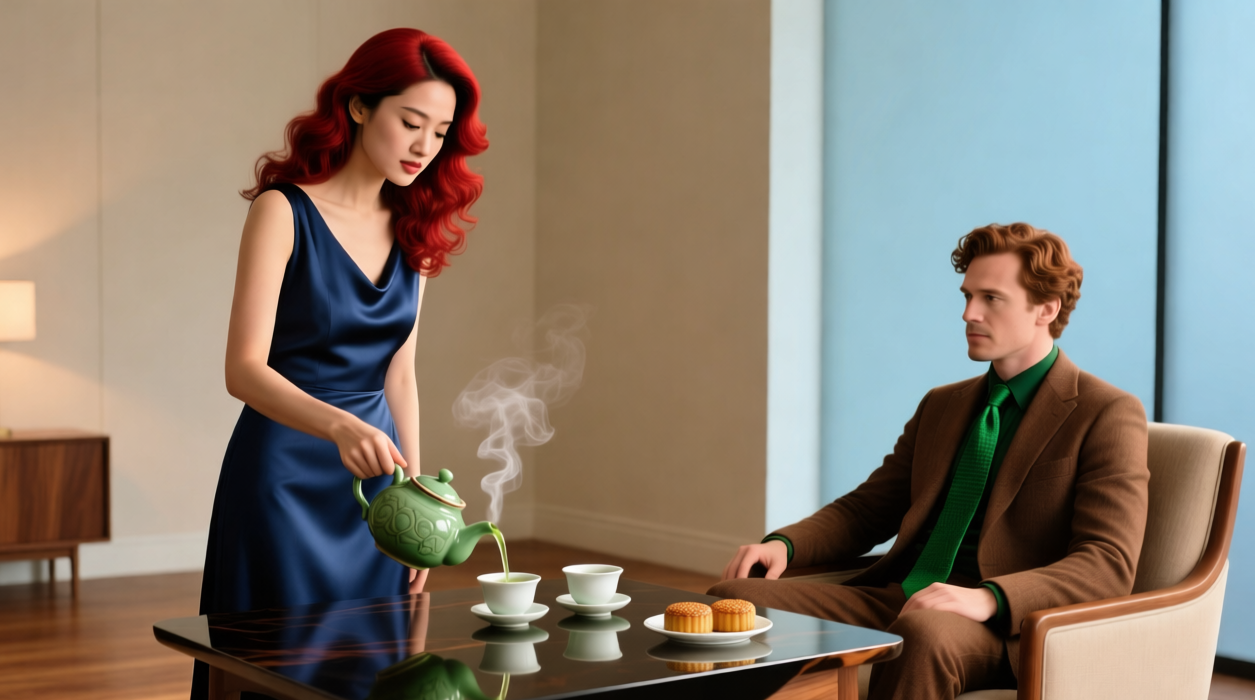 Inside, the warmth of her apartment was a stark contrast to the corporate blankness they’d just left. Rei moved on autopilot, filling the kettle, setting out two delicate cups. She placed a small plate of mooncakes on the low table, her hands trembling so vaguely she hoped he wouldn’t notice. She couldn’t look at him as she poured the steaming green tea. The words felt like shards of glass in her throat.