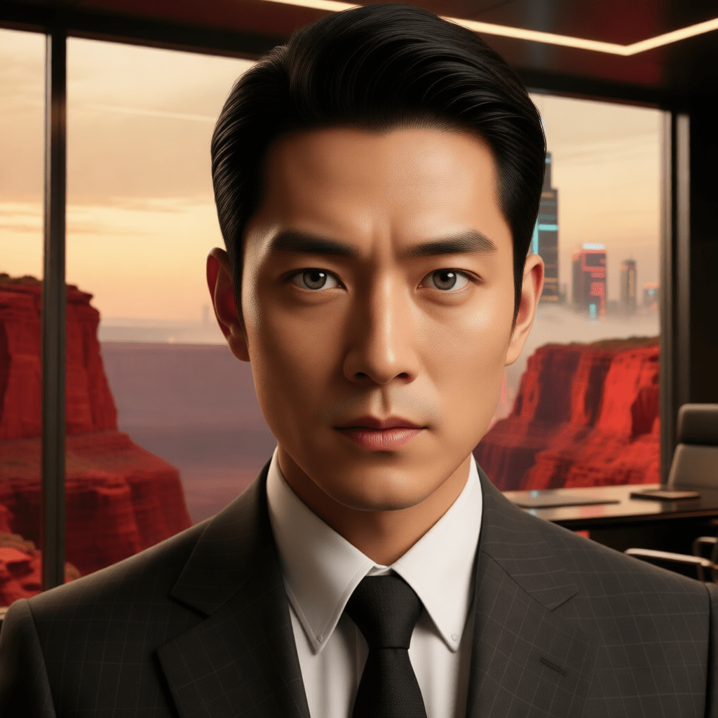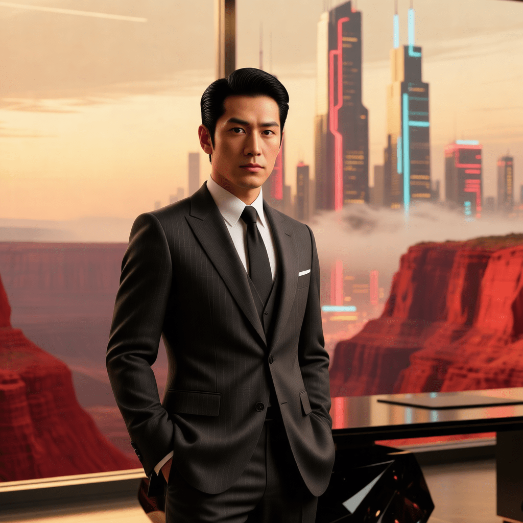 Two of them were muscle, the kind of men Rei had seen shadowing corpo execs at gala doors. The third was leaner, a man she recognized from boardroom pitches; sales, or some mid-tier management. Lastly there was Cillian, standing tall in the notorious beige suit, green tie, calm eyes that gave away nothing. He didn’t move closer than the others., didn’t fidget. But Rei felt him like a weight in the room, steadying her even as her stomach coiled tight.