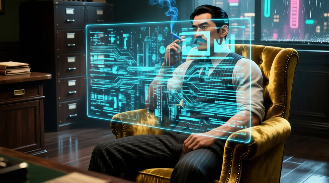 Karasu leaned forward, smoke curling between his fingers, “And Eidolon’s using it to teach their constructs how to feel real.” Aoi enlarged a set of data overlays, “Exactly. The BICOCA feed creates a complete imprint – like a memory fingerprint. Then Eidolon’s AI parses it, learning from the target’s linguistic habits, micro-expressions, response timings, emotions… hell, even their ticks, idiosyncrasies and insecurities. It’s what gives their virtual double that ‘alive’ effect.”