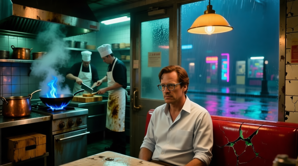 His name was Leo Mercer, and he felt utterly at home in the controlled chaos of a Chinese restaurant kitchen. The Jade Dragon was tucked in a half-basement off one of Mirage City’s less-glitzy commercial arteries. It was loud, steamy, and gloriously analog. Woks roared with blue-tipped flames, cleavers thudded rhythmically on worn wooden blocks, and waiters shouted orders in a rapid-fire blend of Cantonese and city-slang. For Leo, it was the perfect antidote to the silent, sterile pressure of Helix Apex’s data labs.